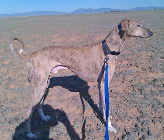 One more run before a third judge and he'll get his title. Bamako also has a great natural recall at the end of the run - an inherited trait which all breedworthy sighthounds should possess. Lower photo shows Bamako with owner/handler DaNae Keys.